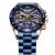 Elevate your style with this luxurious hollow quartz chronograph watch designed for the modern man. Crafted with precision and elegance, it combines high-end performance with a bold, sophisticated look. Featuring a full gold case and blue steel band, this timepiece adds a touch of class to any outfit, whether you are heading to a business meeting or enjoying a casual evening out.